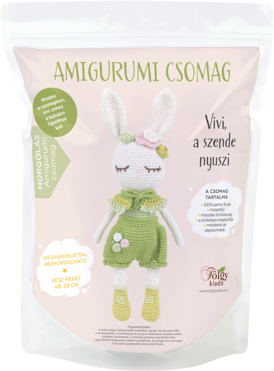 Vivi, a szende nyuszi több különálló darabból áll, amelyeket össze kell horgolni, illetve varrni. Bizonyos műveleteihez kell egy kis gyakorlat vagy türelem, a mintaleírásban azonban sok fotó segíti az elkészítést, valamint az alaptechnikák képes leírásából minden horgolóöltés és módszer elleshető.